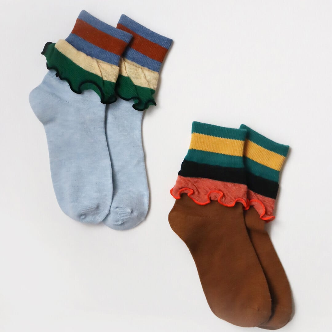 派手に見えますが、色々な色のボーダーなので、意外と合わせやすいですよ。