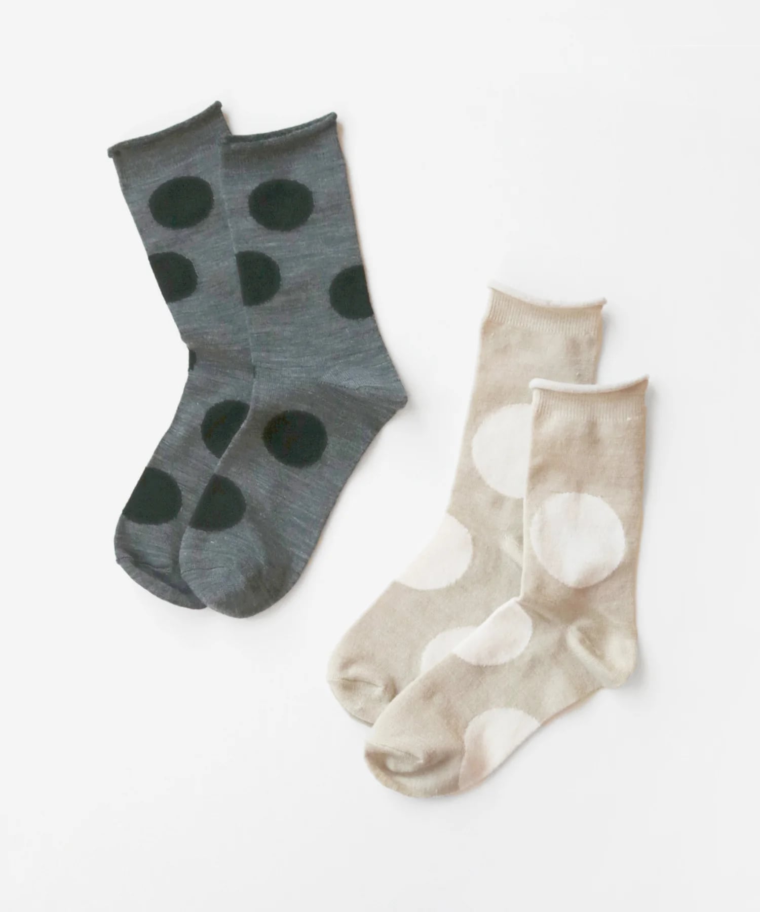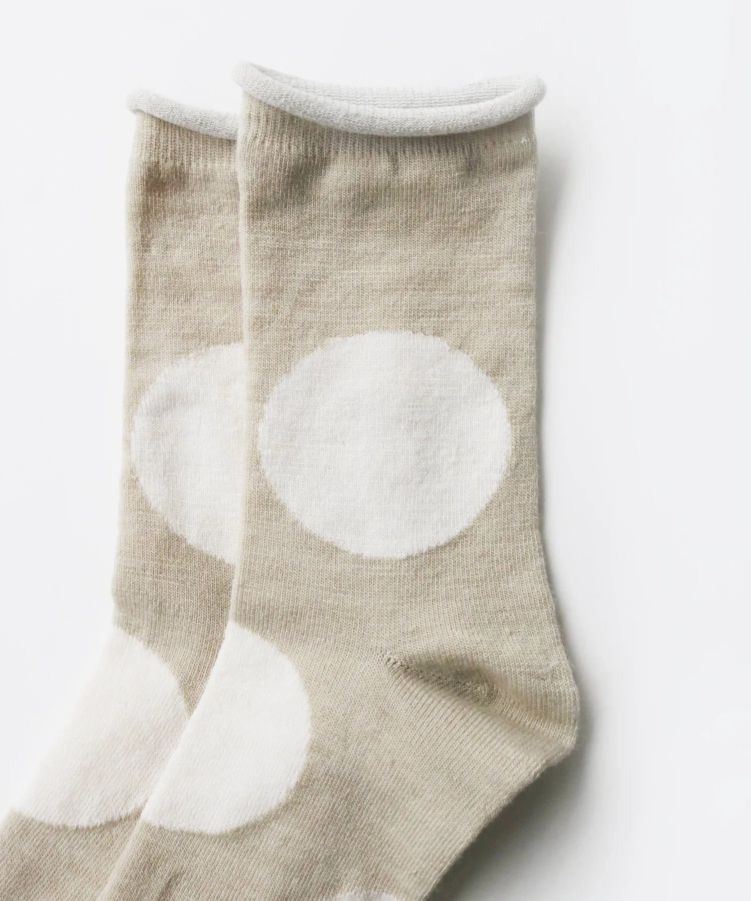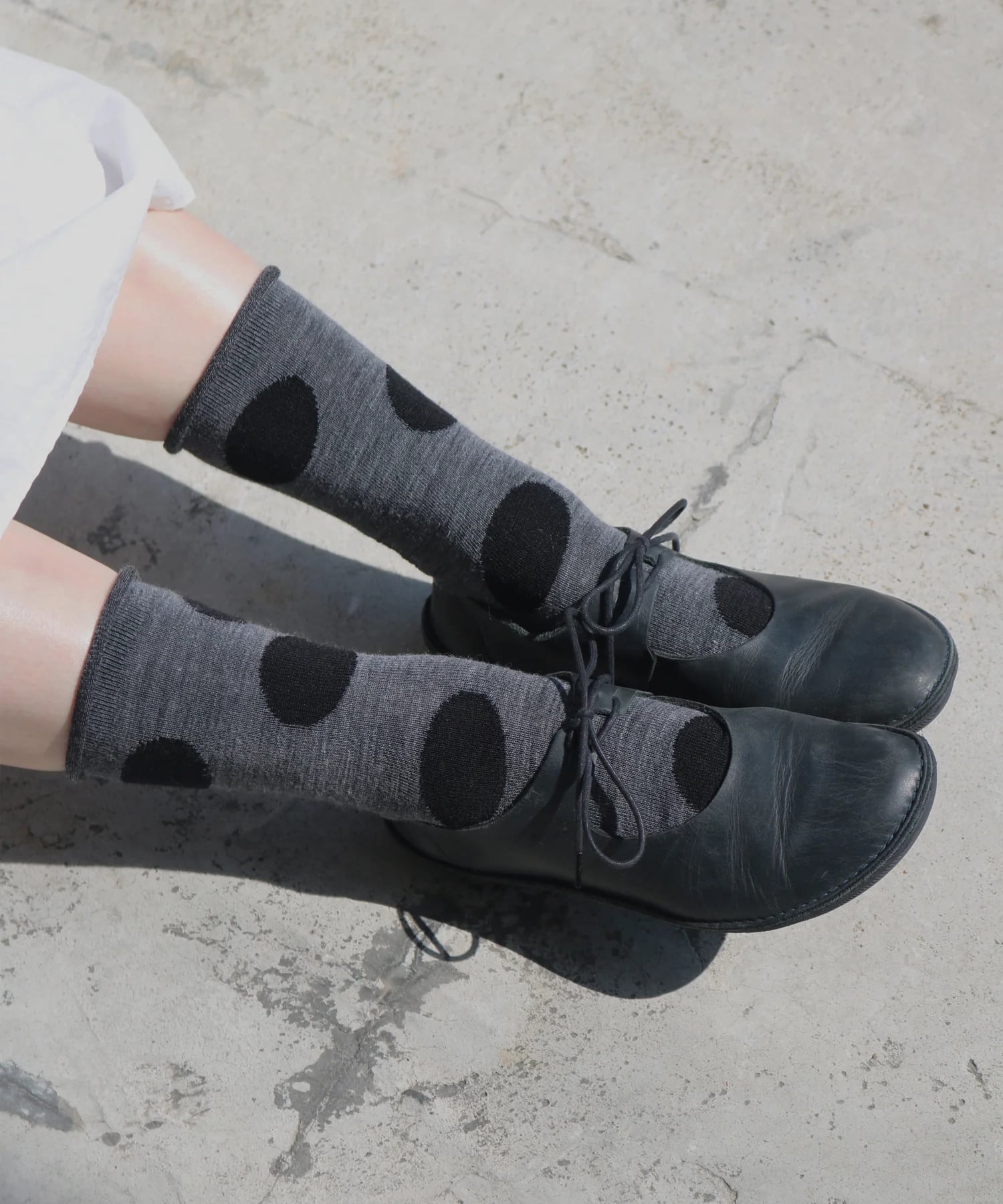 大きな水玉模様はどんな洋服にも合わせやすく、お仕事の時にもお使いいただけそうです。