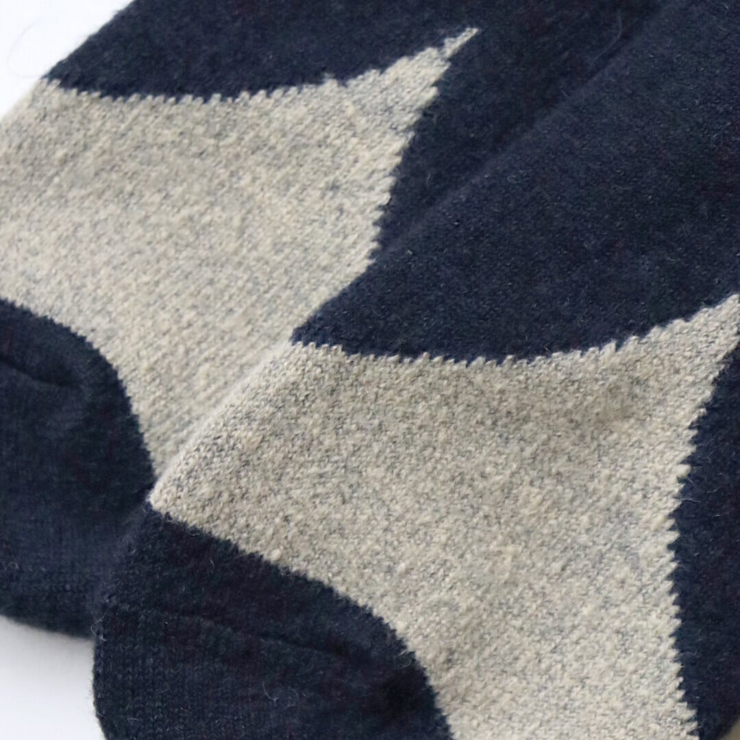 ふっくらとしたバルキーでウールライクな糸使いのやや厚手な靴下です。ちょっぴりウールが入っていて暖かく、冬におすすめです。ふかふかの履き心地を是非。