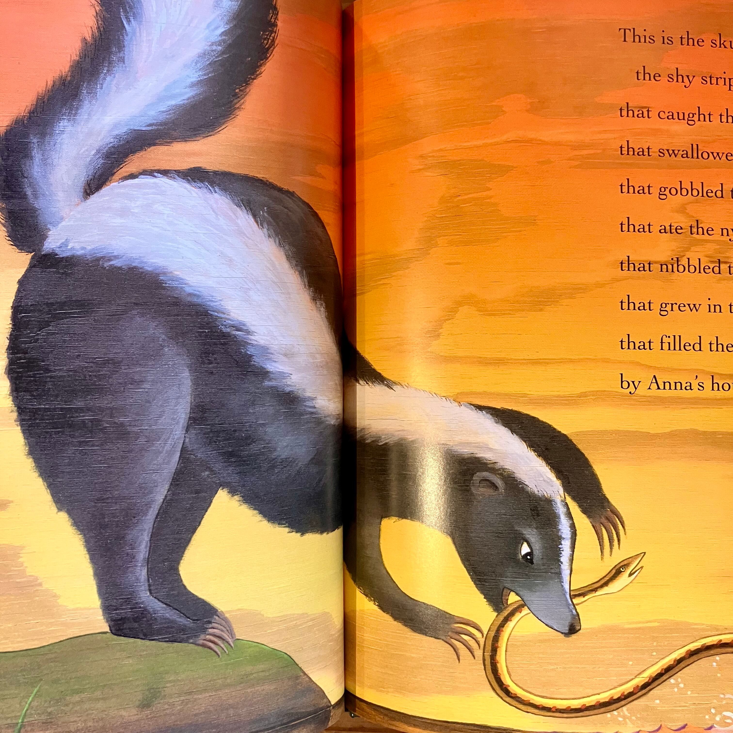 アンナの家の池は静かに水をたたえていて、翡翠のような藻が漂い、カゲロウの幼虫がそれを食んでいる。そこに幼虫を餌にするゲンゴロウが、そしてそのゲンゴロウを餌にするカエルもいる。ガーターヘビはカエルを丸呑みし、スカンクはヘビを食べる。スカンクはアメリカワシミミズクに捕まる。アライグマはミミズクの卵を食べ、キツネはアライグマを追う・・・。アンナはコヨーテの吠える声に、本から顔をあげて、窓の外、夏の夜の庭に耳を澄ます・・。