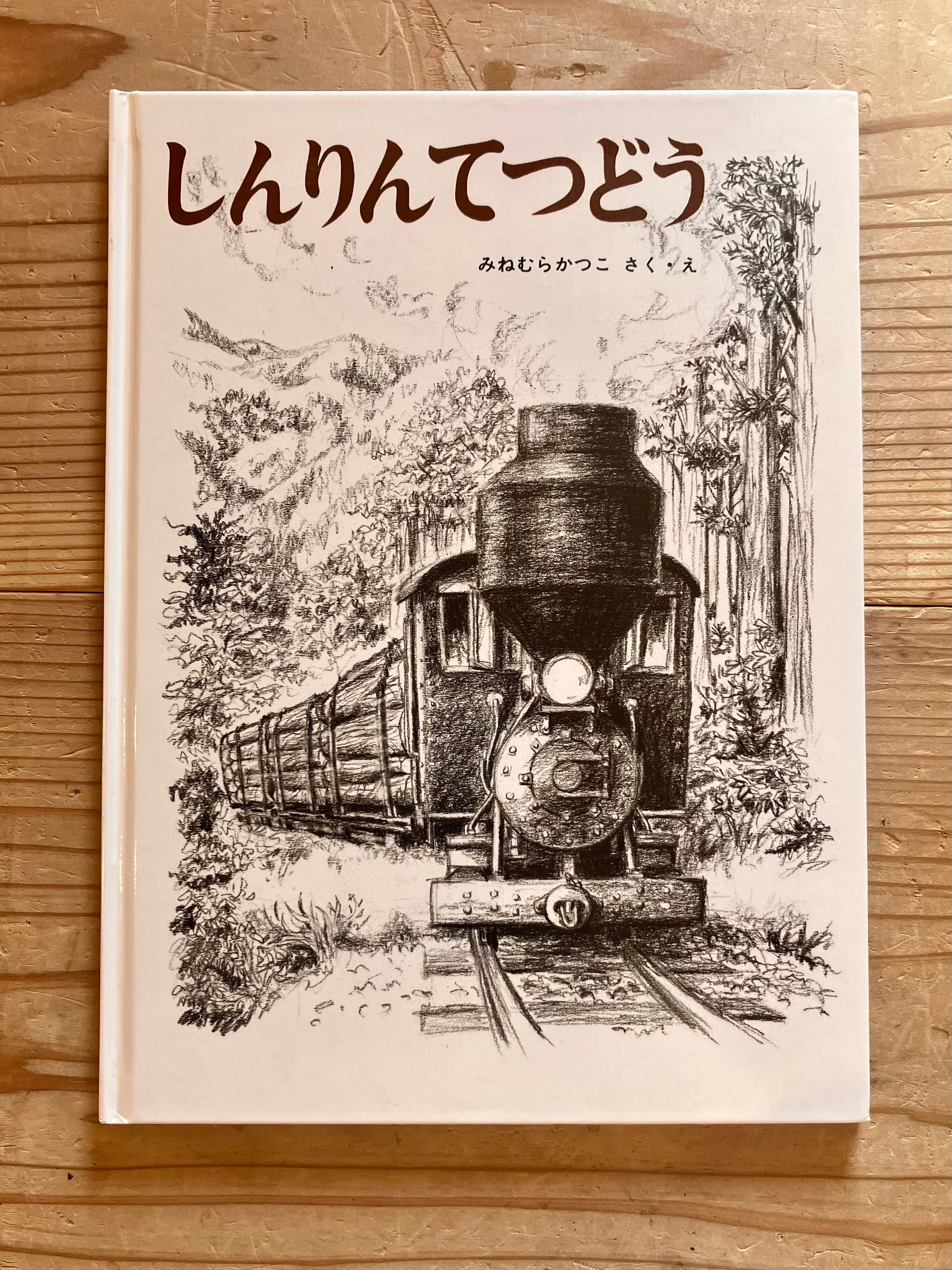 蒸気機関車に引かれた森林鉄道の列車は、材木を積んだり人や荷物を乗せて、山の村とふもとの町の間を1日に何度もいったりきたりしています。朝、町の学校に通う村の子どもたちが乗って列車は出発しました。途中で急病人を乗せると、急なカーブの続く線路を大急ぎで走ります……。山に暮らす人々の生活と仕事を支える森林鉄道を、墨一色で力強く描きます。
