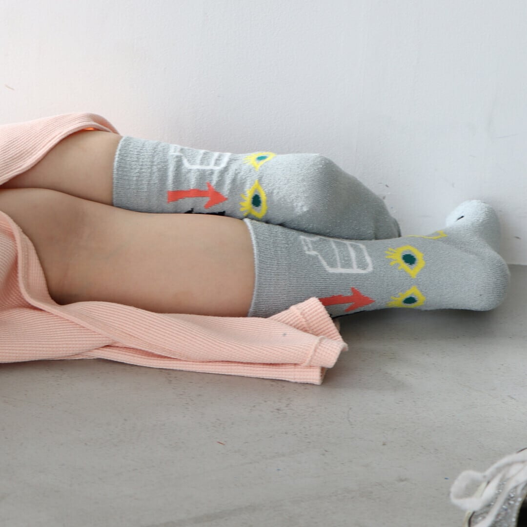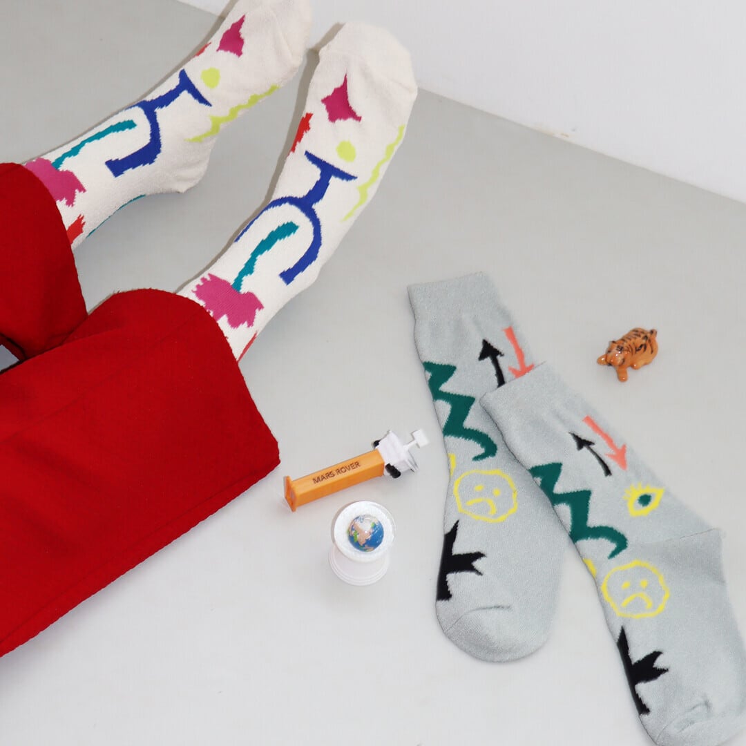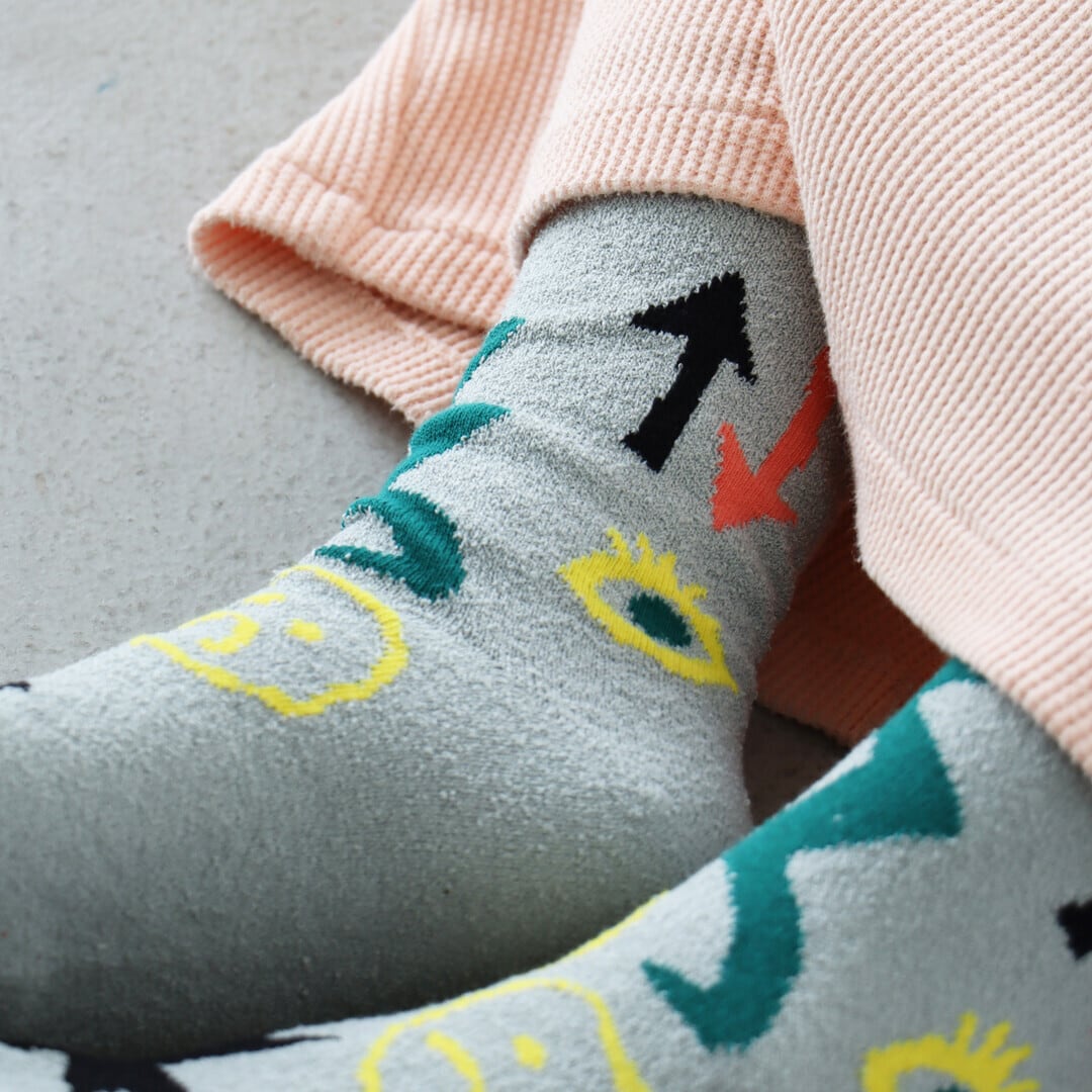 くるくるくせ毛のような糸、ブークレ糸を使った靴下です。