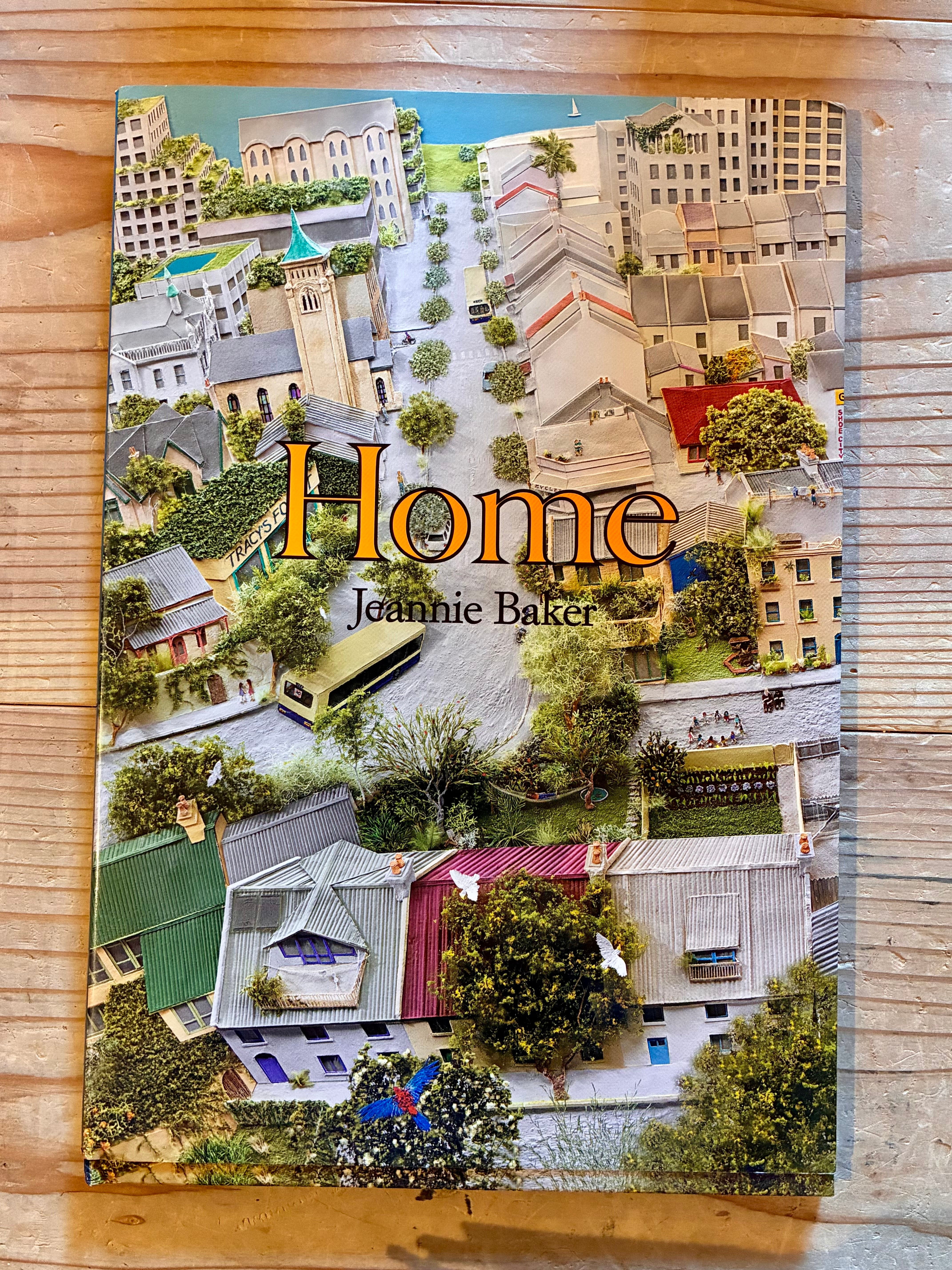 赤ちゃんが成長する様子を窓からのぞくようなコラージュで描いた、